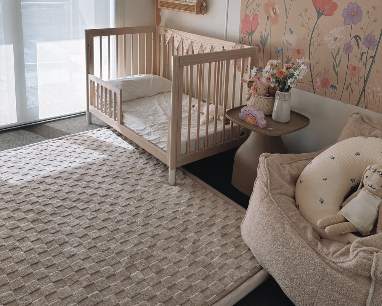 I wasn’t sure how the raised check would feel, but it’s lovely underfoot and great for crawling and rolling around